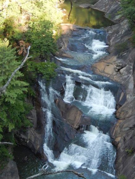 Tallulah has an interesting visitors’ center and a number of trails with steps that go to Tempeste and Hurricane Falls and then further down into the gorge. To go beyond the main trail into the creek to slide on the rocks, you need a permit. Only a small number are issued each morning so you need to be there when the park opens.