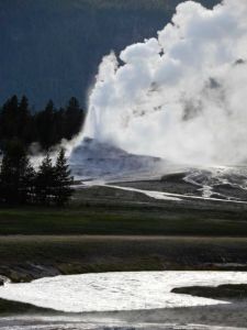 #1 Grand Prismatic Spring – Located in Midway Geyser Basin. This area may be small, but it leaves a lasting impression. In addition to Grand Prismatic Spring, there’s Excelsior Geyser, an enormous geyser crater, and the Turquoise and Opal Pools. You reach the field by a bridge across the Firehole River where boiling water flows into the river and steam rises from around the field. This location is very popular and the secret is to get up early and making this your first stop. On most days gridlock begins to set in around noon.