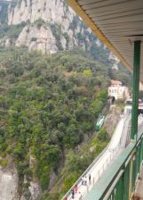 Spending time in Barcelona? Take a day trip to Montserrat Mountain. Start at the Plaza Espanya train station in Barcelona. The train station is in the same building as a metro station so it’s easy to get to. Follow signs for the R5 train which runs ever fifty minutes or so. The train will take you to stations at the foot of the mountain but, before buying tickets, you will need to decide whether you would like to travel up Montserrat Mountain by Cable Car or by the Rack Railway . There are agents selling combination tickets who can help you decide, so ask them for advice. You also need to confirm which station to exit based on your choice.
