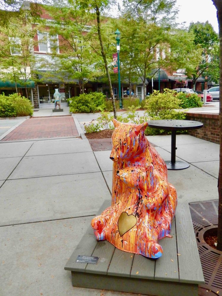 We’ve run across cities decorated with brightly painted statues in a number of places that have featured cows, horses and dolphins and they seem to add something to scene. Hendersonville has bears. Perhaps a couple of dozen spaced up and down Main to good effect.