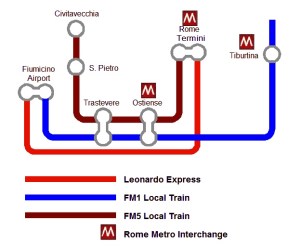 The best way to get into Rome is to take a train. From Civitavecchia a typical trip to S. Pietro (40 mins), Trastevere (50 mins),