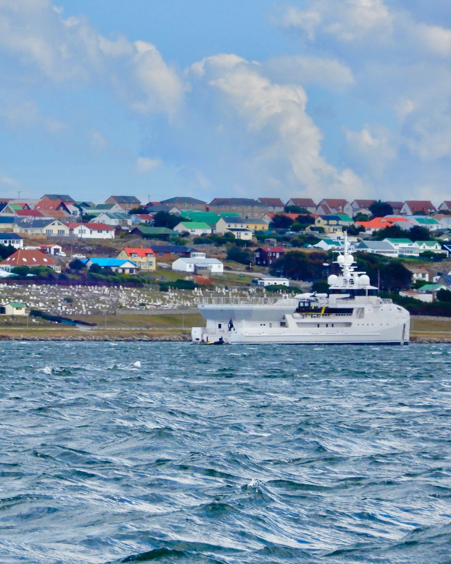 Stanley is located on a large natural double harbor. Unfortunately, the docking facilities cannot accommodate most cruise ships so, for almost everyone, it is a tender port. The larger ships will most likely anchor in the outer harbor while the smaller ones can anchor closer to the town’s landing.