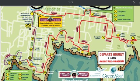 The town of Katoomba is the center of the Blue Mountains with a number of attractions nearby. Once in the Blue Mountains we booked the Blue Mountains Explorer Bus near Katoomba Station. The day pass was about US$30and begins at the Carrington Hotel, Katoomba Street. There are 29 stops which include Katoomba Falls, Echo Point, Three Sisters and Leura Cascades. There is a cable car ride (extra charge) and a complex at Scenic World with a café and a restaurant. There is also the Trolley Tours running a similar route as The Explorer Bus for about the same fare. Between hopping on and off, hiking a number of trails and enjoying lunch we spent about nine hours in the area.
