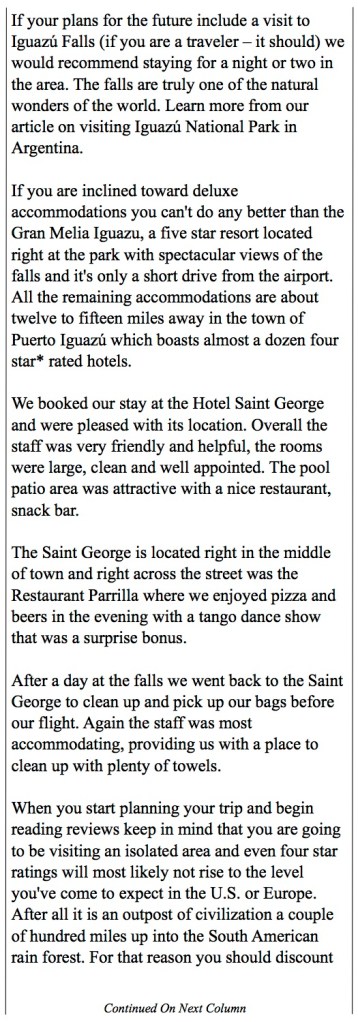 Unbelievable Iguazú Falls And A Traveler’s Guide to Accommodations Posted byThe Intentional TravelerJanuary 2020February 2023Posted inCentral & South AmericaTags:#intend2travel, Argentina, Hotels, Iguazú Falls, Porto Iguazu Looking For Something Special? Search this site to find travel inspiration, tips and more. SearchSEARCH Share this: Click to share on Facebook (Opens in new window) Facebook Click to share on Pinterest (Opens in new window) Pinterest Click to share on Pocket (Opens in new window) Pocket Click to share on X (Opens in new window) X Like Loading... Related