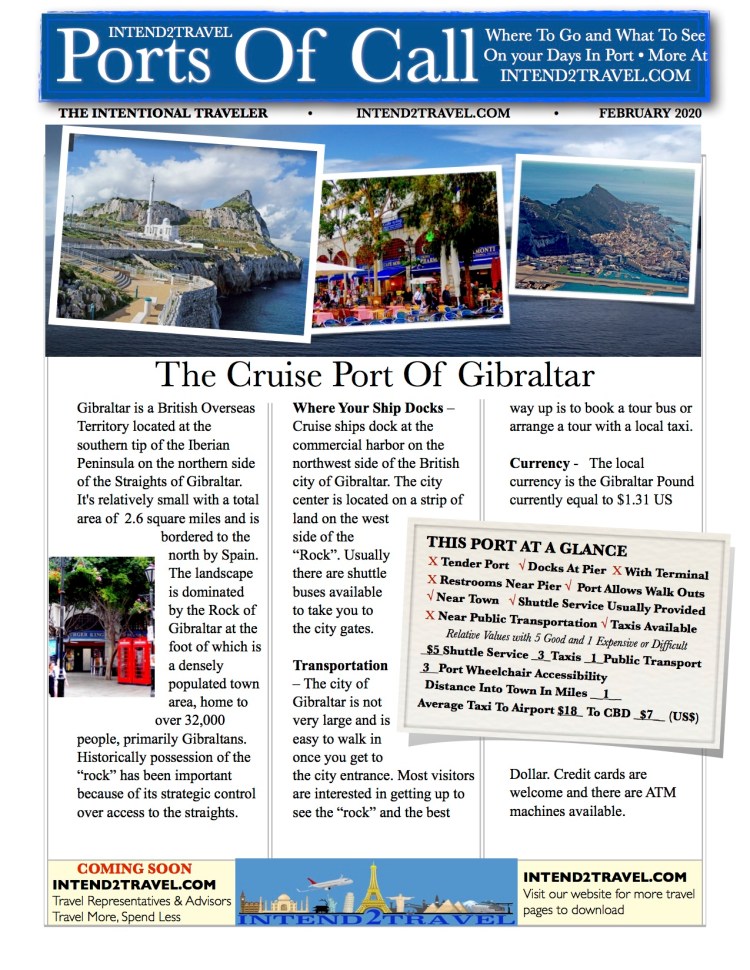 Port Of Call Gibraltar – What You’ll Discover Posted byThe Intentional TravelerFebruary 2020March 2020Posted inCruise Ports of Call, Cruising, EuropeTags:#intend2travel, Cruise ports, Cruising, Port of Gibraltar, The Rock of Gibraltar Dominating the passageway from the Atlantic into the Mediterranean the Rock of Gibraltar effectively controls the Straights of Gibraltar and is a British possession. This port of call offers a number of unique experiences for the cruise passenger. The Gibraltar Apes Got Lazy Share this: Click to share on Facebook (Opens in new window) Facebook Click to share on Pinterest (Opens in new window) Pinterest Click to share on Pocket (Opens in new window) Pocket Click to share on X (Opens in new window) X Like Loading... Related