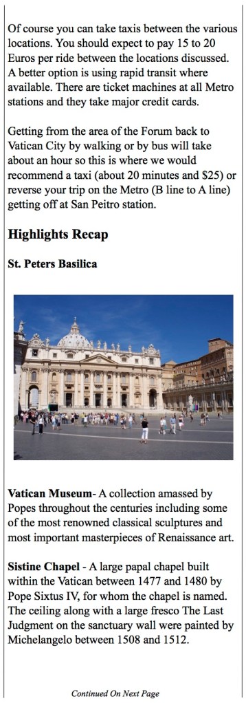 Just One Day In Rome Posted byThe Intentional TravelerMay 2020Posted inEurope, Tips & Tech An essential guide to seeing the major sights of Rome when you only have a few hours. The Vatican, Pantheon, Trevi Fountain, Spanish Steps, The Roman Forum and Colosseum. Click this map to download a pdf copy to save or print Share this: Click to share on Facebook (Opens in new window) Facebook Click to share on Pinterest (Opens in new window) Pinterest Click to share on Pocket (Opens in new window) Pocket Click to share on X (Opens in new window) X Like Loading... Related