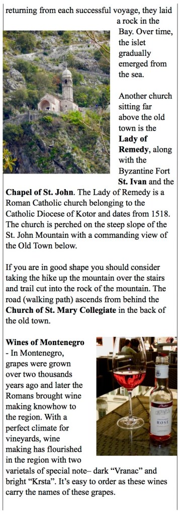 The Cruise Port of Kotor, Montenegro Posted byThe Intentional TravelerJune 2020June 2020Posted inCruise Ports of Call, Cruising, EuropeTags:#intend2travel, Adriatic, cruise, Our Lady of the Rocks, port of call, wine A cruise port off the Adriatic Sea that’s gaining in popularity recently as much for the historic old city as for the incredible scenery. Share this: Click to share on Facebook (Opens in new window) Facebook Click to share on Pinterest (Opens in new window) Pinterest Click to share on Pocket (Opens in new window) Pocket Click to share on X (Opens in new window) X Like Loading... Related