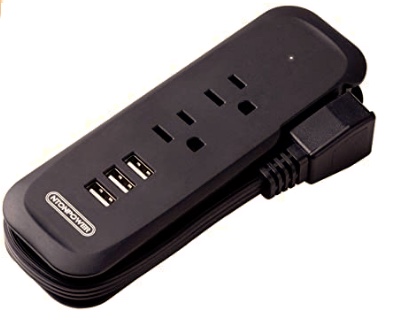 We’ve had a number of travel USB travel chargers but this one is our favorite. This extension power strip is compact with a cord self storage feature. The short extension cord is really handy as it allows it to be plugged into hard to reach outlets and tight spaces where charging voltage converters just won’t fit.