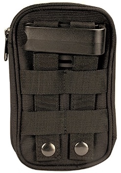 Large Molle 10″ x 7.5″ x 2.17″ – Clamshell Design, closed by double two way zippers with pulls, allows opening up completely to the bottom. It has paracord inside which can be adjusted to either allow for a chest mounted “desk” platform or to fully open. Moisture Resistant 1,000-D Military grade Cordura fabric coated to be water repellent).