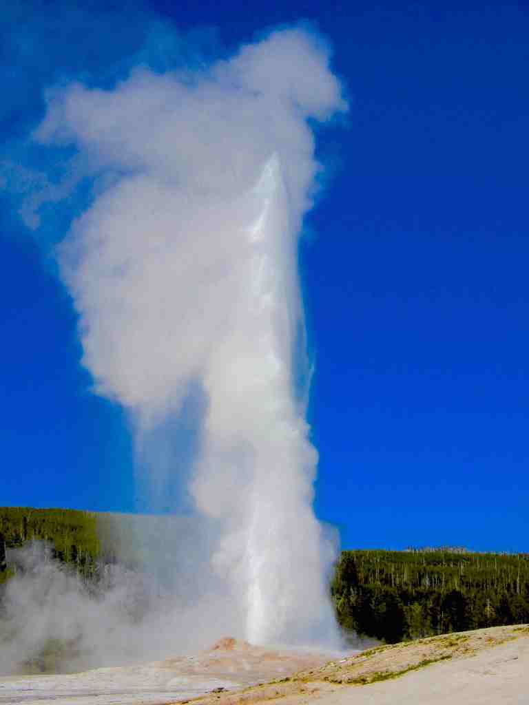- This pleasant, partially paved trail follows an old service road beside the Firehole River to the geyser. Cyclists must dismount at the end of the asphaltand walk the last few hundred feet. Lone Star erupts up to 45 feet from from a 12-foot cone approximately every three hours.