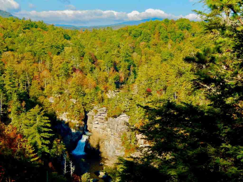 One of the highlights of traveling the Blue Ridge Parkway is spending time around Linville Falls. There are almost a dozen trails for hiking with many offering vantage points overlooking the various levels of the falls as the Linville River drops into the Linville Gorge. While most of the trails to the fall’s overlooks are moderate to difficult the views are well worth the effort required.