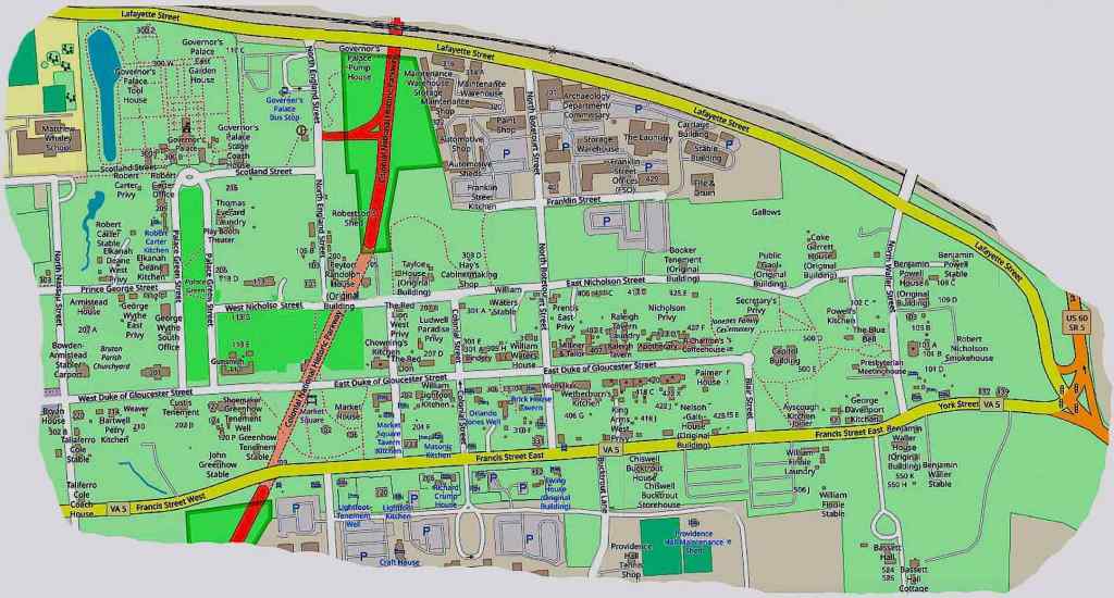 Major buildings include Raleigh Tavern, the Capitol building, the Governor’s Palace (all reconstructed), as well as the Courthouse, the George Wythe House, the Peyton Randolph House, the Magazine, and the functioning Bruton Parish Church (all originals). Four taverns have also been reconstructed for use as restaurants. There are historically accurate craftsmen’s workshops for trades, that include a printing shop, a shoemaker, blacksmith, a cooperage, a cabinetmaker, a gunsmith, a wigmaker, and a silversmith.