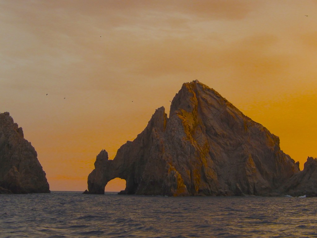 Lands End Cabo San Lucas Probably my favorite sunset ever. A place at the tip of Baja, Mexico where the land vanishes into the Pacific. Rugged rock formations stand above azure waters with pockets of beautiful sand beaches just too inviting to resist.