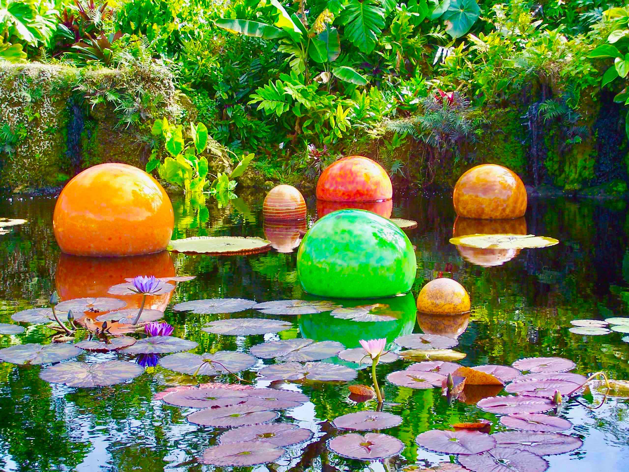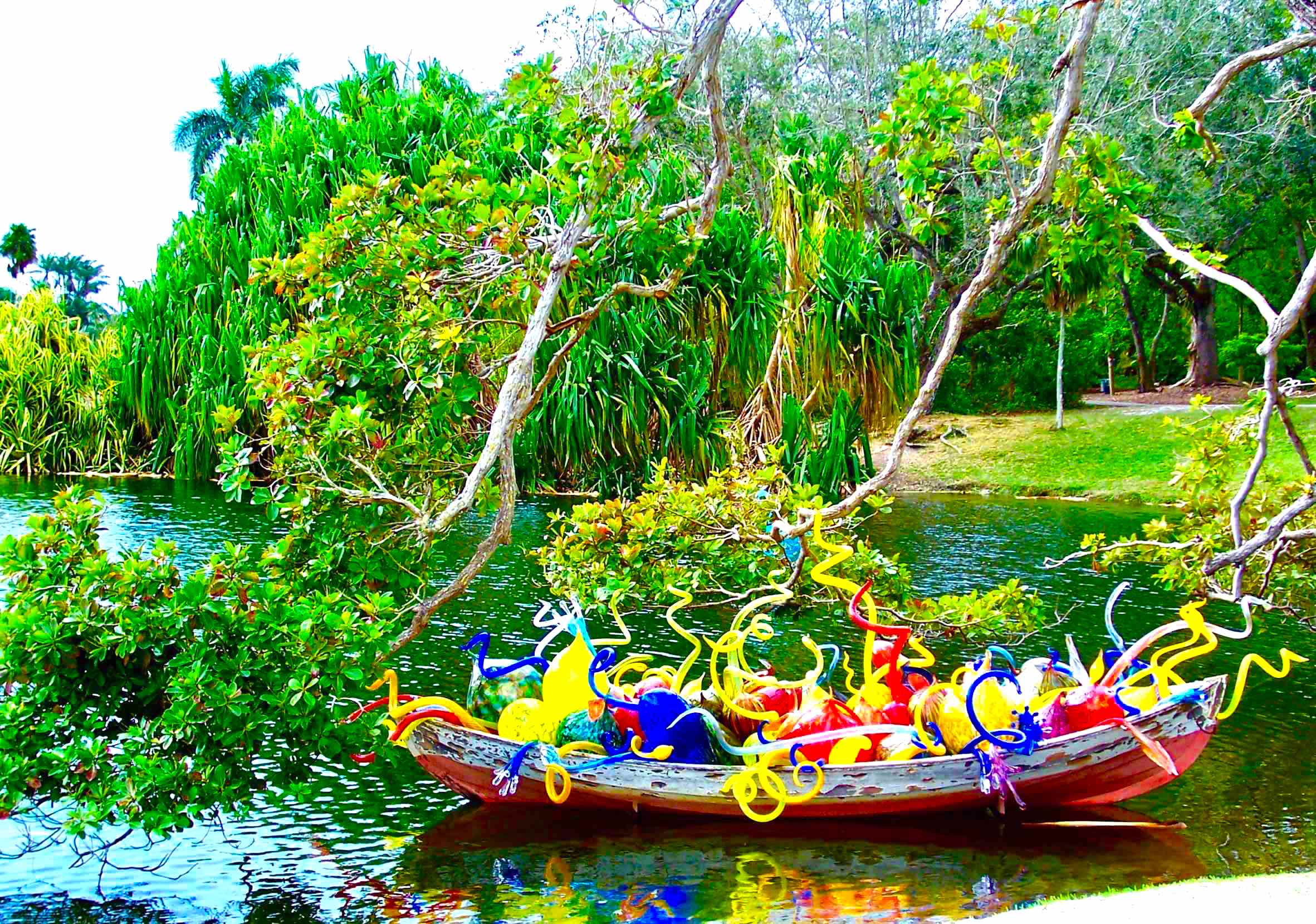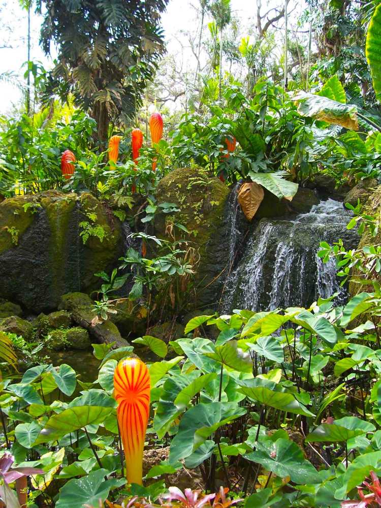 A few years ago Fairchild Tropical Botanic Gardens in Miami hosted a garden wide show of Chihuly creations and the setting and combination was remarkable.