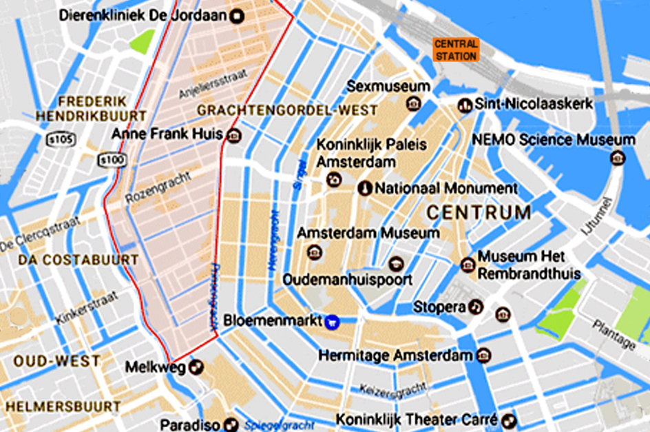 A beautiful city for walking, with its canals, flower gardens, parks and historic sights. The city of Amsterdam is laid out like a fan with the Central Train Station being the base of the fan. The tram routes sort of radiate out through the city from the Central Train Station and Centrum neighborhood with the city’s famous canals arcing across the fan.