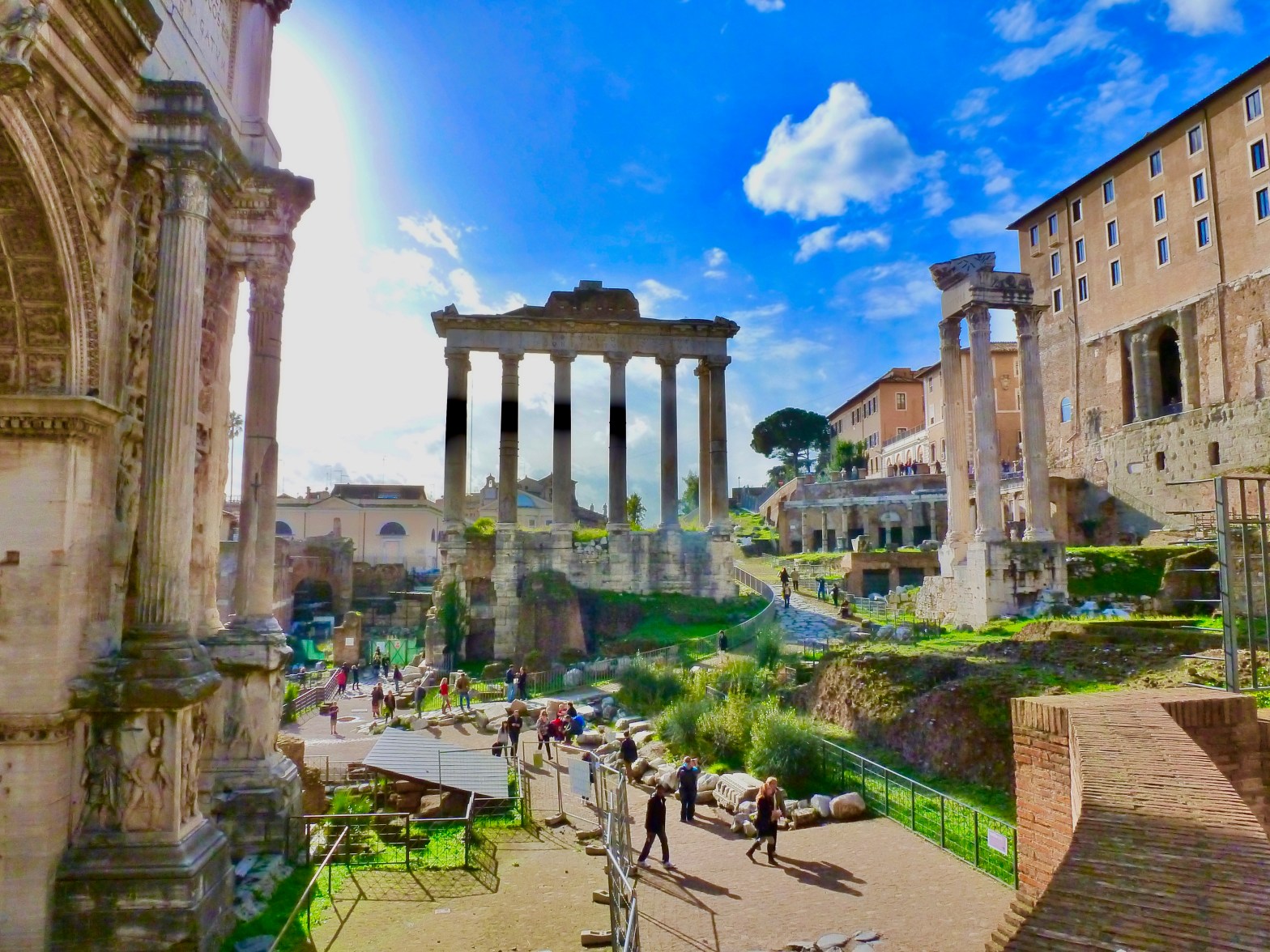 The Roman Forum – A rectangular plaza containing the ruins of several important ancient government buildings. Originally a marketplace, the Forum became the center of the Roman Republics government and was the heart of ancient Rome.