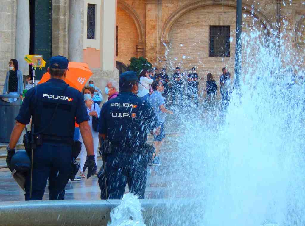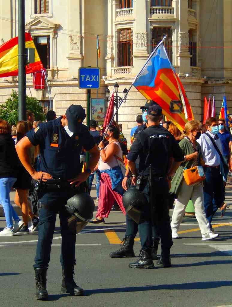 On leaving the area after a number of hours our impression was that the crowds and demonstrators were actually very orderly and well behaved and the police presence was a huge over reation. Our Spanish isn’t that good but what we heard and later read was a lot of talk and discussion about left wing groups, extreme right wingers, antifascist, fascists and much praise for the progressive political and social majority of Valencians.