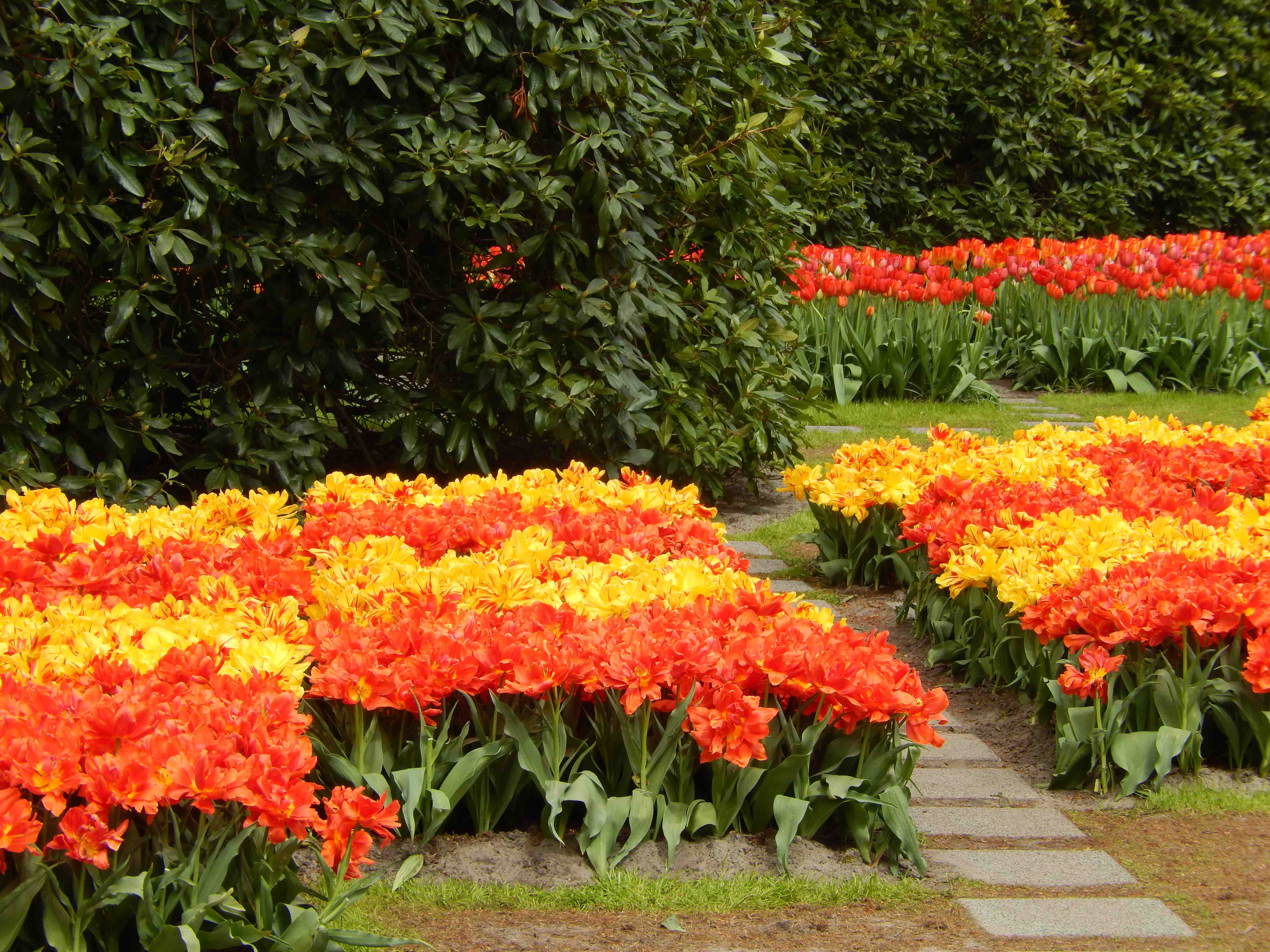 The gardens are located in Lisse only a short distance southwest of Amsterdam. The festival runs from mid March thru mid May and is serviced by special buses from Amsterdam airport with a combined ticket that includes entry and return fare. If you are staying in Amsterdam it’s easy to get there. Take a bus or tram to the Amsterdam Central Station and catch an express train directly to the airport. Once there it isn’t hard to figure out – just look for the crowds and the Keukenhof buses. Usually there are combination tickets at the airport that include round trip bus and admission. You can check with tour agencies or your hotel but that will probably cost you an extra $5 to $10 and you will end up traveling the same route regardless (bus, train, bus admission and return).