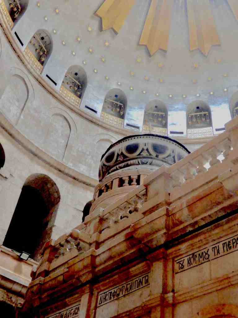 Just inside the entrance to the church is the Stone of Anointing or Unction, which tradition believes to be the spot where Jesus’ body was prepared for burial by Joseph of Arimathea. One of the rituals upon visiting the church is to lean in and touch the stone. Many people report a religious experience upon laying their hand upon the Stone of Anointing.