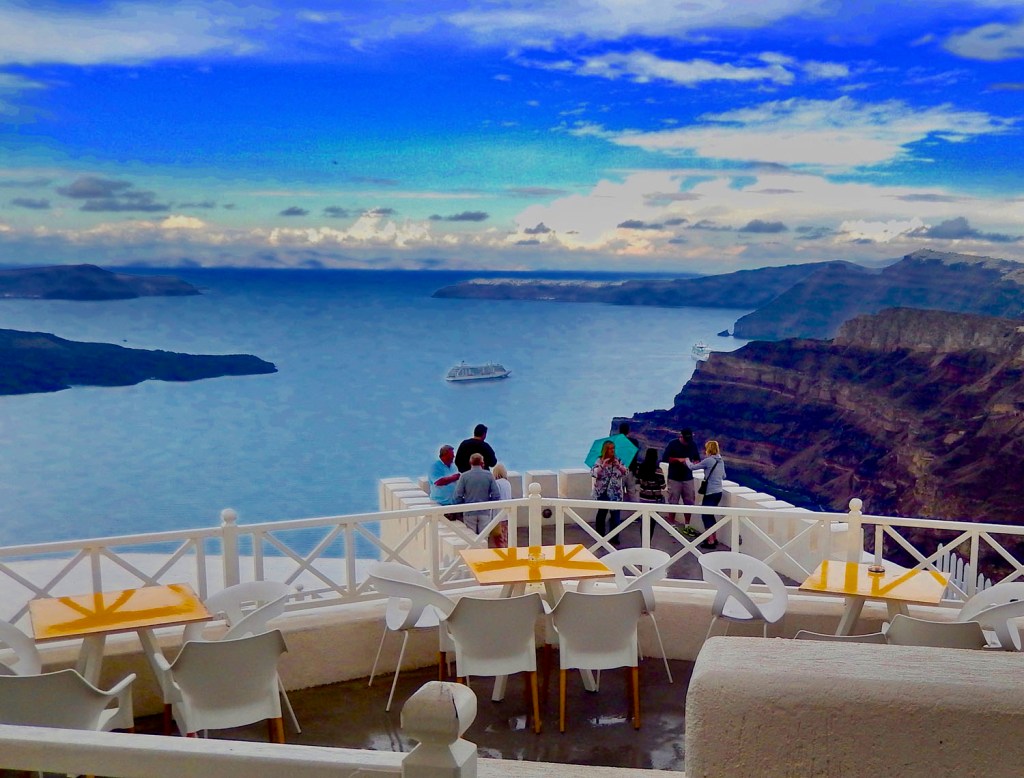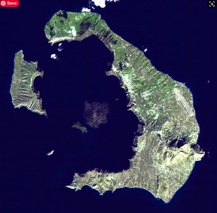 You’re standing on the deck of a cruise ship near Santorini, Greece that’s anchored in the middle of a ring of islands. The near island’s sheer cliffs rise almost a six hundred feet right out of the water. You are looking at the aftermath of the largest explosive event in all of human history.