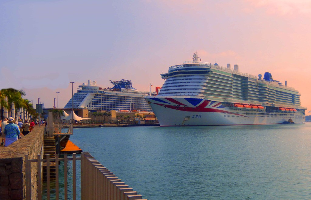 The Las Palmas cruise ship piers are located right in the commercial center of the city which allows easy walking out. There are some public facilities at the pier and in the adjacent mall. Walking into town is less than a quarter of a mile. Right at the entry to the port is a modern five-story shopping mall which is very convenient for picking up some necessities and last minute souvenirs.