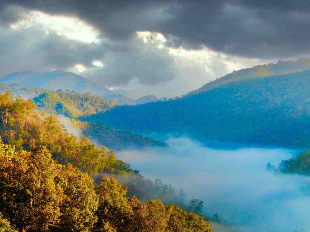 They have always been called the smokey mountains and for good reason. The mix of the climate and the old rounded mountain landscape seems to be perfect for the development of morning fog. As the mornings wear on it takes a long time for the Sun to reach into the valleys and burn off the fog. The Smokey Mountains of North Carolina.