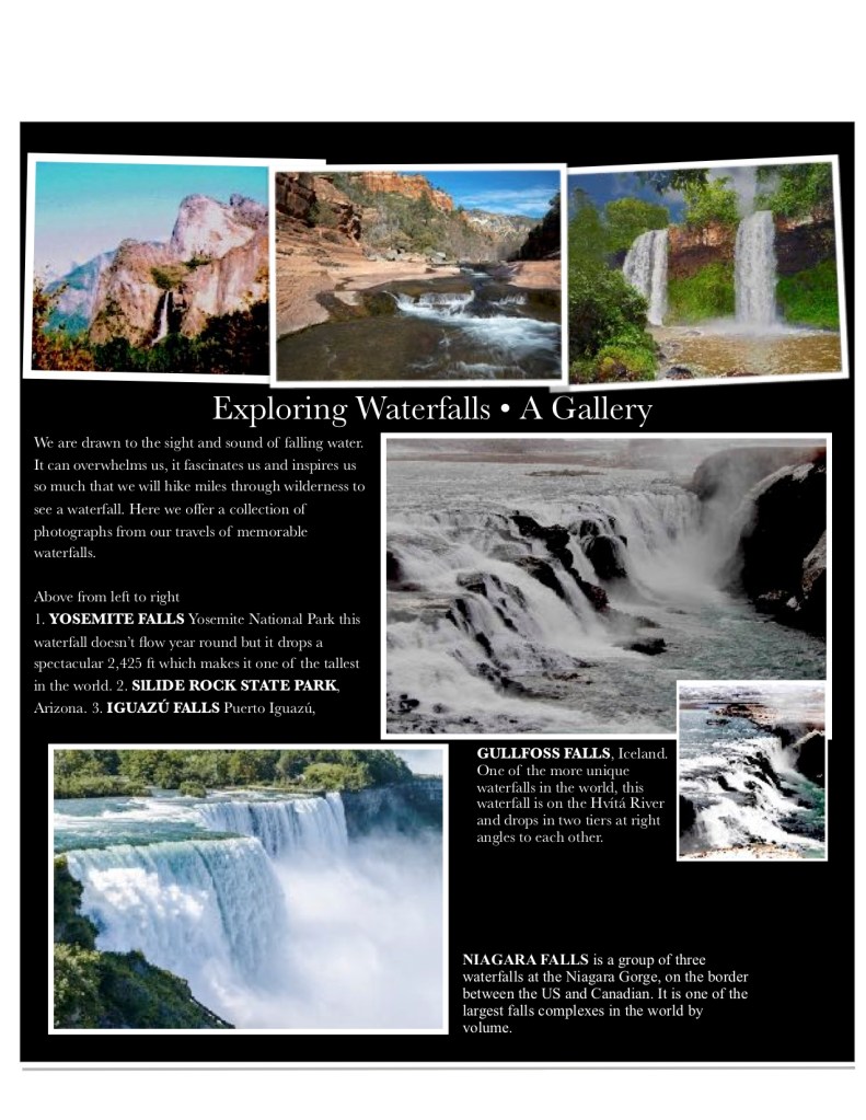 We are drawn to the sight and sound of falling water. It overwhelms us, fascinates us and inspires us. Here you’ll find images of a few of our favorites.
