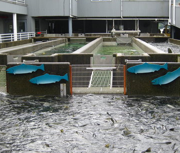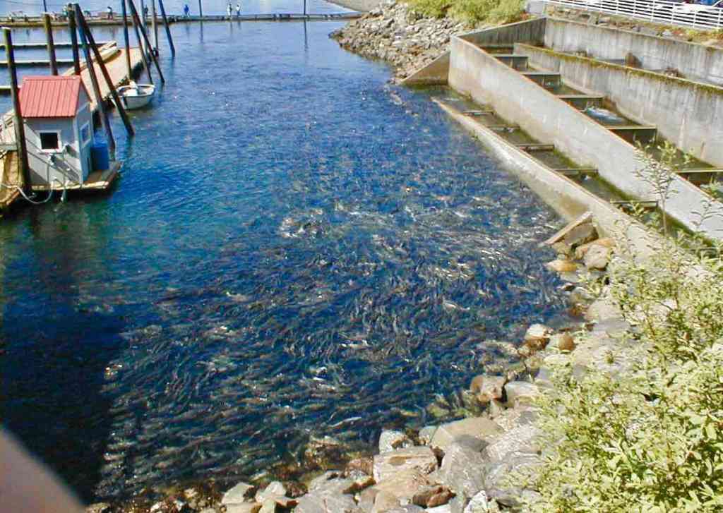 These fish hatcheries were designed to capture and fertilize salmon eggs, raise the fry, release them from the hatchery to migrate where they will eventually return to start the cycle again. A system that is much more efficient than fish farming.