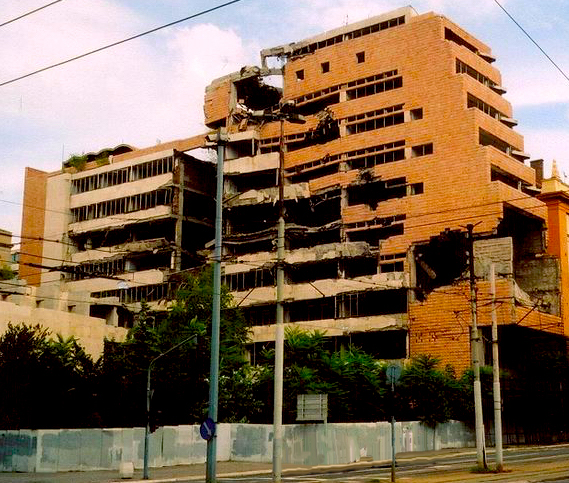 There are few traces of the 1990s Balkan war to be seen in Belgrade with the exception of the ruin of the Serbian Army Headquarters. It was hit several times with cruise missiles and is now left standing as a reminder of the war.