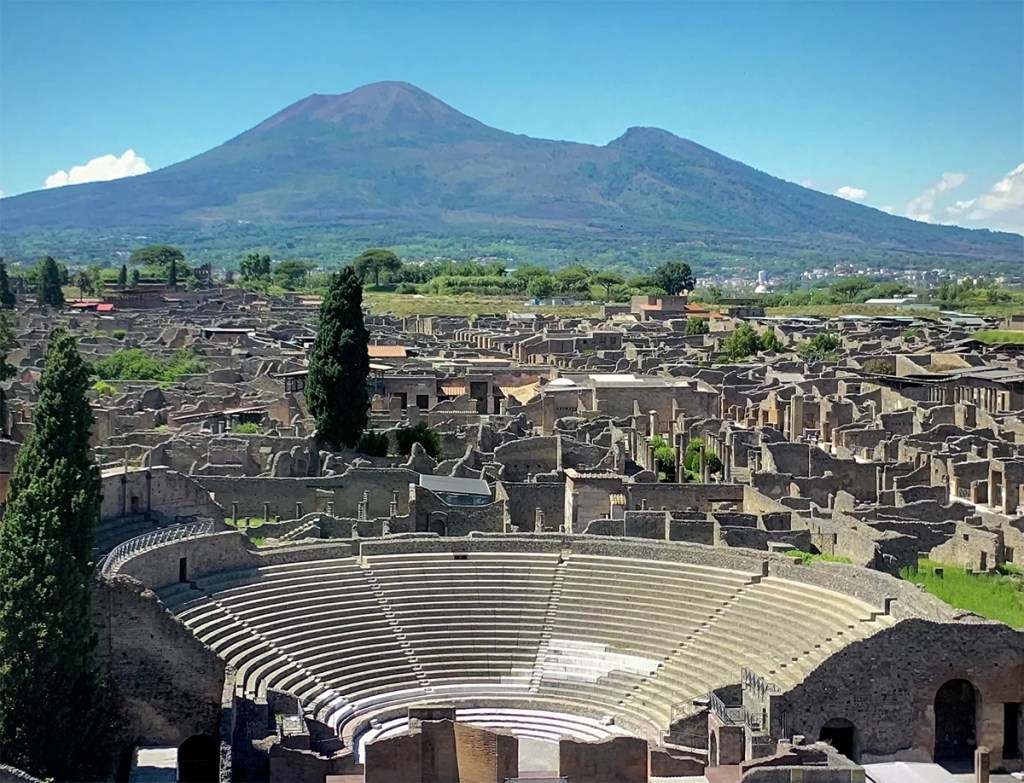 Almost 2,000 years ago a wealthy Roman city, with a population of 11,000 to 15,000 people was located near the southeastern base of Mount Vesuvius, a dormant volcano. These Roman citizens enjoyed many beautiful public buildings, luxurious private houses that featured lavish decorations, furnishings and works of art. Mosaics covered the floors and frescos were common wall decorations. The people attended gladiator games, plays, visited public baths and shopped in several large open-air marketplaces.