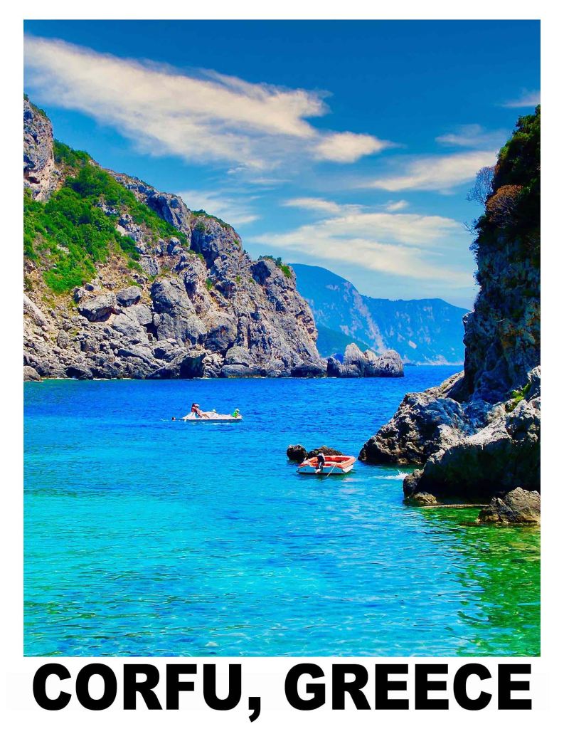 Situated off the northwest coast of Greece is the Greek island of Corfu. Surrounded by the crystal clear waters of the Ionian Sea, it’s known for its cobblestone streets, pastel-colored buildings, beautiful beaches and a touch of hedonism. Corfu is where Northern Europeans come to get suntans and party – year round.
