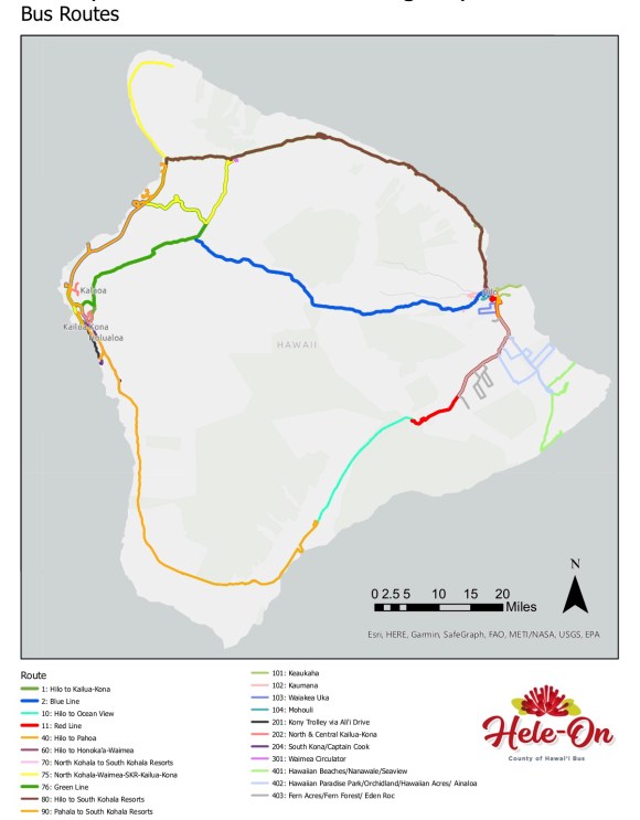 The actual town is small and pedestrian friendly. The island of Hawaii also offers free mass transit via the Hele On Bus (see below). There are stops all around the island of Hawaii, with service between Kona and Hilo running Monday through Saturday. All buses are wheelchair accessible, and it’s free to go anywhere on the island. If you want to get out into the countryside on your own the best option is to rent a car available at a few agencies right in town.