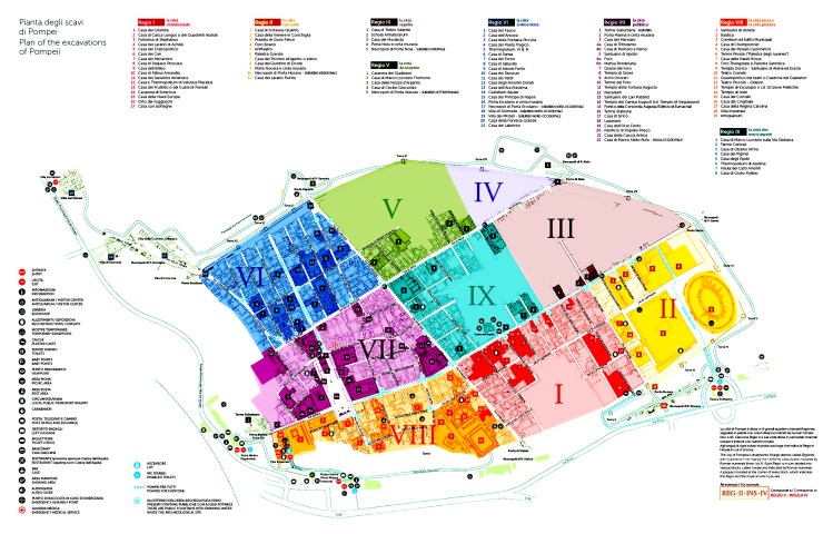 Pompeii, Italy – A visitors map to the archeological site of the 2,000 year old Roman city of Pompeii.