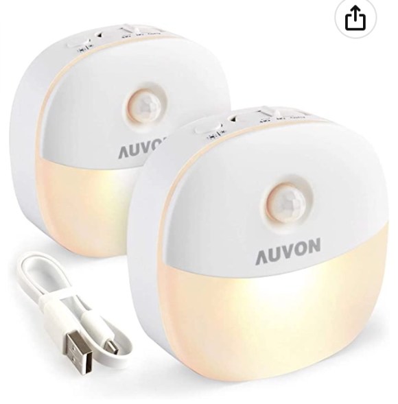 A Great Nightlight This little gem is worth its weight in gold. It’s motion activated and recharges using any USB charger (cord included). It measures a small 2.2″ x 2.2″ x 1.1″ and weighs only 5 ounces.