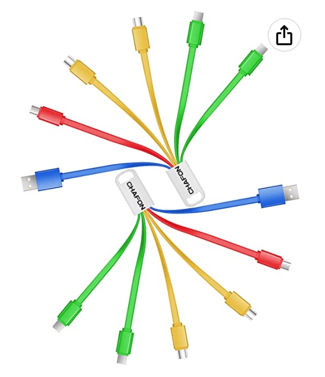 The Right Charging Cables. Not sure which charging cables to carry? This Multi Charging Cable is the answer. A short, 2 Pack of 6 inch octopus cables. Includes 1 Multiple USB Fast Charger Cord Adapter, a Type C, Micro USB connectors compatible with most Cell Phones/Tablets/Portable Charger including iPhones, Androids and type C devices.