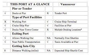 The cruise pier in Vancouver is called Canada Place and it is centrally located with a nice cruise terminal. Canada Place is also a convention center and community event venue so take the time to discover what’s going on inside. Just walking out of the terminal finds you in downtown with a tourist office within a couple of blocks of the pier. Only a few blocks walk to the southwest is Gastown, a popular historic district with lots of restaurants and clubs. A few blocks farther south is Vancouver’s Chinatown, which is home to a large Asian population replete with markets and excellent Chinese restaurants.