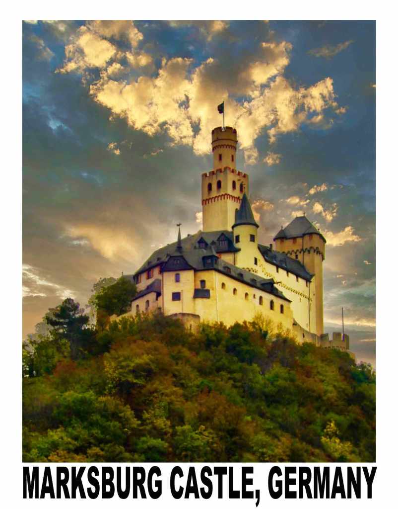 Marksburg castle stands above the town of Braubach in Rhineland, Germany. It is one of the central sites of the Rhine Gorge UNESCO World Heritage Sites. The fortress was used for protection rather than as a residence for royal families and throughout several centuries was never conquered.