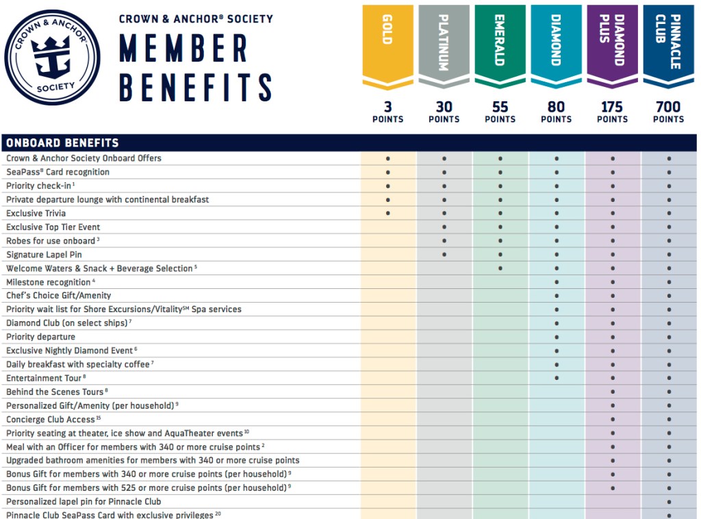 Cruising with Royal Caribbean International® is truly a rewarding experience, especially when you’re a member of our Crown & Anchor® Society. You’ll receive benefits not only when onboard, but also when you’re planning your cruise. And – as your points grow, so do your benefits and status.