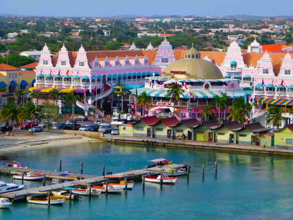 The main city on the island is Oranjested and cruise ships dock at cruise terminals right next to the cities central marina. The two cruise terminals have public facilities and a wide array of services and shops selling perfume, Dutch duty free items like Delft and Caribbean handicrafts and souvenirs. Inside the air conditioned terminal you’ll find staffed information booths, where they can assist you with maps, tours and all the information you need to explore Aruba. Central Oranjested is only a few blocks from the piers.