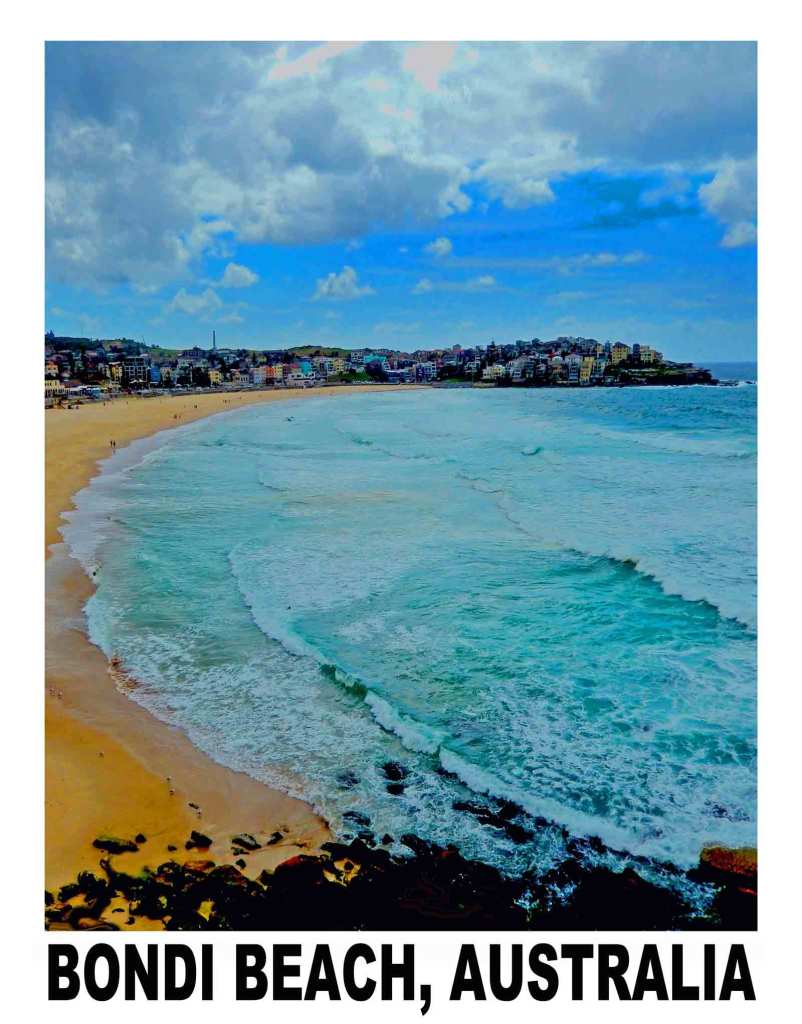 Bondi Beach is recognized as Australia’s premier surfing beach and it is similar in topography and surf to Hawaii’s Waikiki Beach. The normally moderate height waves are famous the world over for their long rides drawing a number of international surfing competitions each year. It is also an iconic beach town and being only five miles from downtown Sydney and easily accessible by public transportation it usually has large weekend crowds. Most days starting with sunrise the beach draws surfers out into the waves, swimmers to its many ocean pools along with a mix of sunbathers and people watchers to its sand.