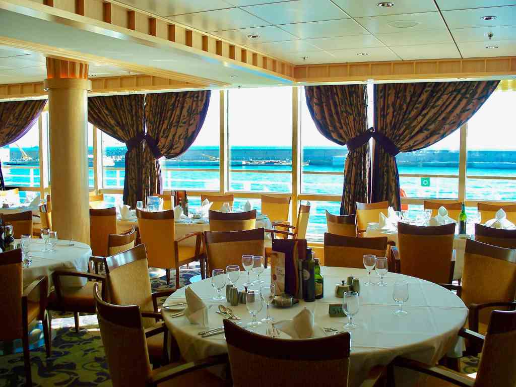 The main dining rooms serve sit-down dinner from daily featured menus. On many ships, you will be assigned to a main dining room, while other ships, like Norwegian Cruise Line, will offer a couple of dining room options you can select from on any evening. Celebrity’s newer ships offer several dining rooms each with a different culinary theme.