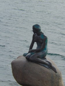 *The Little Mermaid (Danish: Den lille Havfrue) is a famous bronze statue on a rock at the waterside by sculptor Edvard Eriksen, depicting a mermaid becoming human. The sculpture is displayed at the Langelinie promenade in Copenhagen.