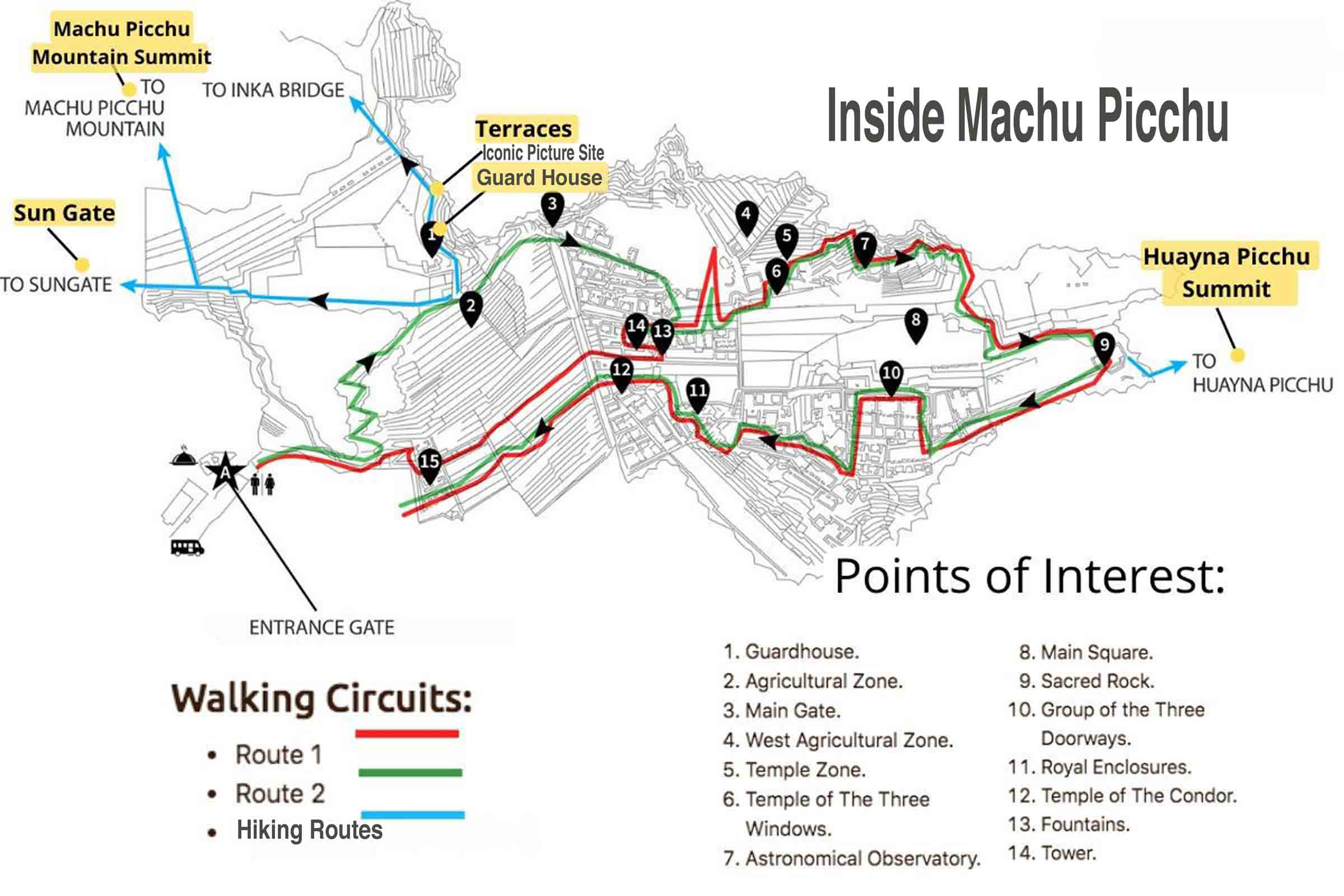 For a downloadable pdf map of the Machu Picchu archeological site click the map below
