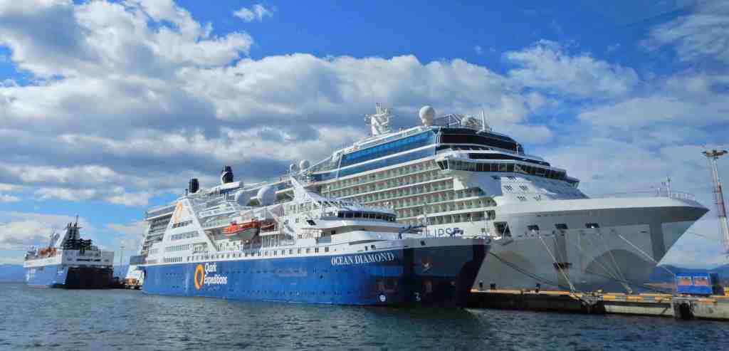 Ushuaia has a large pier right at the cities waterfront capable of handling most ships. It is usually busy in season with expedition boats getting ready for Antarctic tours along with large cruise ships rounding the Horn or setting out for Antarctic waters. Right at the end of the pier is the cities visitor center with facilities and information on tours and the city. Also along the waterfront are a number of tour booking offices.