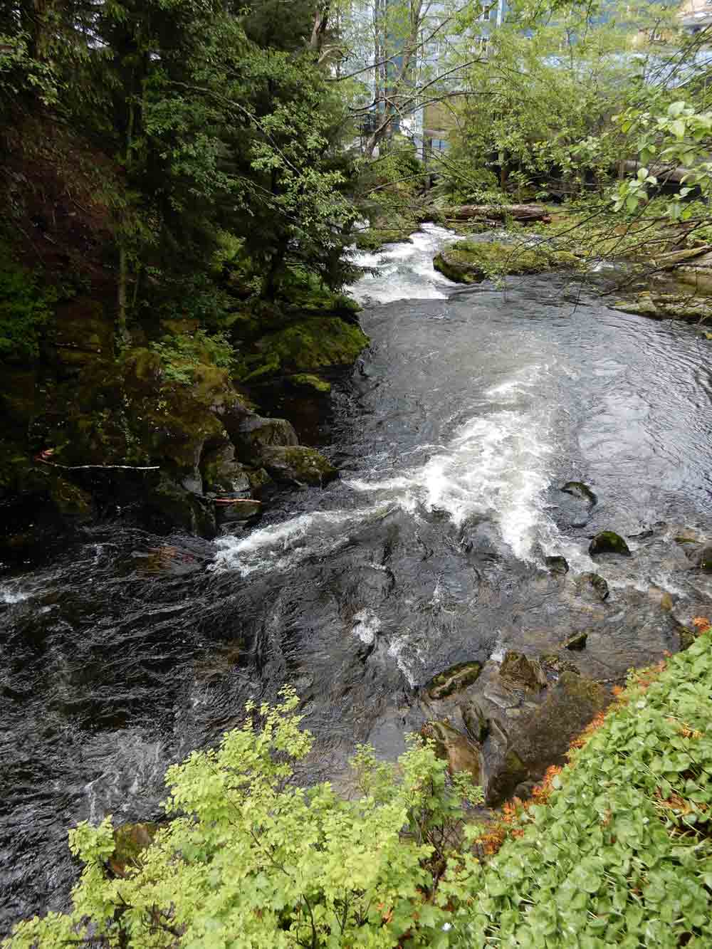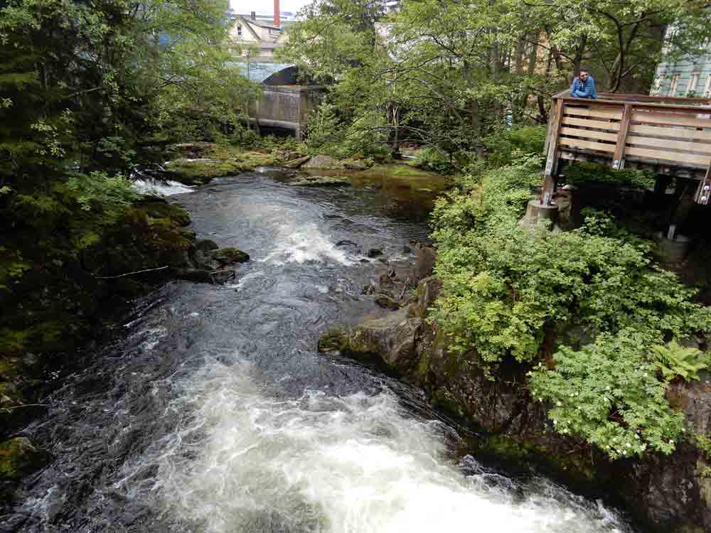 Creek Street has a colorful history that dates back to the early 1900s. At that time, prostitution was legal in Alaska, and Creek Street was home to more than 30 brothels. The street was a popular destination for fishermen and loggers who came to Ketchikan for work and entertainment. During the heyday one Dolly Arthur was the most popular madam and her establishment is still there and restored (pictured above). There were many other women of negotiable affection on Ketchikan’s infamous Creek Street. Spouses looking for a quick exit to avoid being caught at one of the brothels would quickly climb the stairs up the hill. The boardwalk and stairs soon became known as Married Man’s Trail and while famous as an escape route protecting many reputations it is also still a beautiful walk.