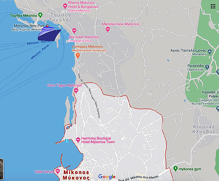 Mykonos has a new cruise pier about a mile and a half from Mykonos City. Shuttle bus service is usually provided and there are good sidewalks around the waterfront but they can be steep in places.