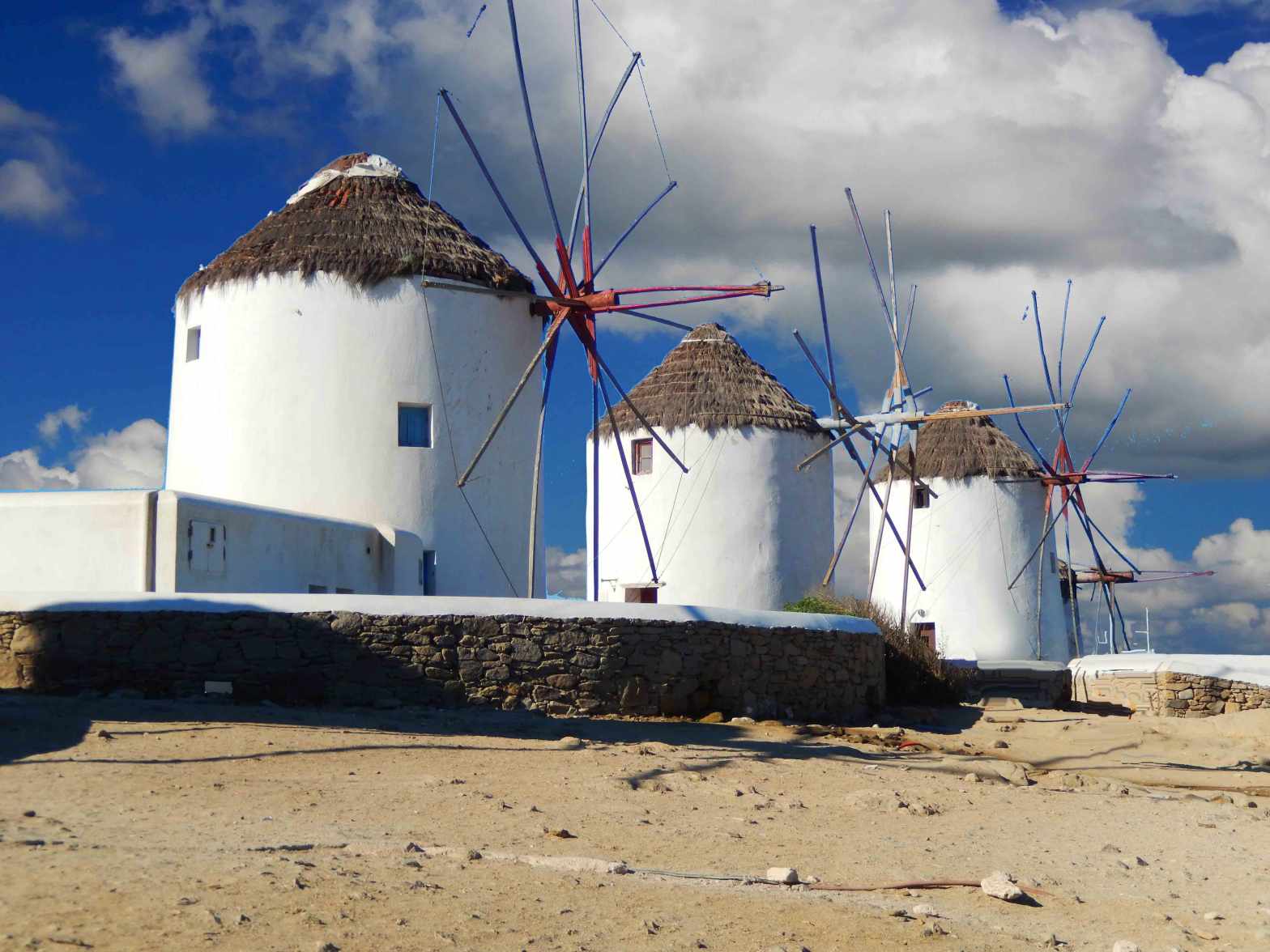 The Mykonos windmills are the iconic feature of the island. The windmills can be seen from many points around the village of Mykonos, the island’s central village and are the first thing you see when coming into the harbor as they stand on a hill above the village.