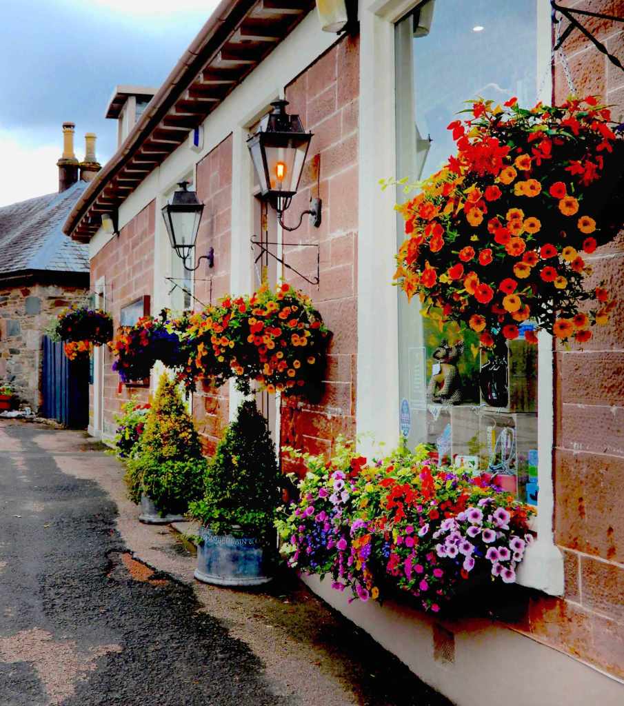 Nestled in the Scottish Highlands on Loch Lomond is the small resort village of Luss. The cute village invites you to stroll its charming streets and discover its fascinating history. Whether you’re interested in nature, history, or simply relaxing by the loch, Luss has something to offer everyone. With its sandstone and slate cottages decorated with flower boxes and gardens, and its narrow lanes the village has been the location of a number of movies and television shows since the 1980s and 1990s.