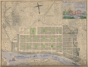 The city of Savannah, Georgia was laid out by James Oglethorpe in 1733 around four open squares. Each square was surrounded by four residential (“tything”) blocks and four civic (“trust”) blocks. Once the four wards were developed in the mid-1730s, two additional wards were laid out and the city grew out from this plan. Almost three hundred years later it is those squares that make Savannah so unique and attractive. Read more HERE about the squares.