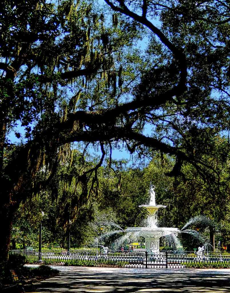 In the center of old Savannah sits the city’s largest park with its centerpiece a nineteenth century fountain. The city planners worked to emulate Parisian elements when designing this city. According to some historical accounts, the fountain is an exact replica of the Fontaine des Mers in Paris but that is only a legend. It is actually a design first shown in 1851 at the Great Exhibition at the Crystal Palace in London, England that was ordered from the ironworks catalog of the company that created it named Janes & Kirtland. Regardless, it is one of America’s most famous fountains and the most visited attraction in Savannah.